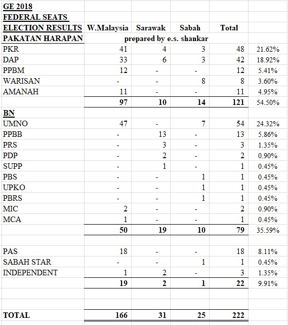 Donplaypuks At Http Donplaypuks Blogspot Com Malaysia 9th May 2018 General Election Results Statistics By Federal And State Seats By E S Shankar
