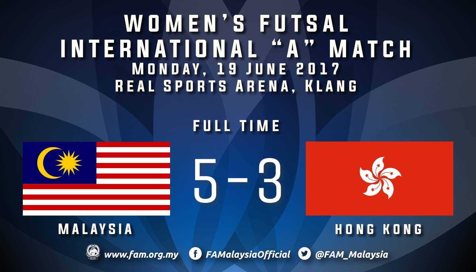 Fa Malaysia On Twitter Women S Futsal International A Match I 19 June 2017 Full Time Malaysia 5 3 Hong Kong