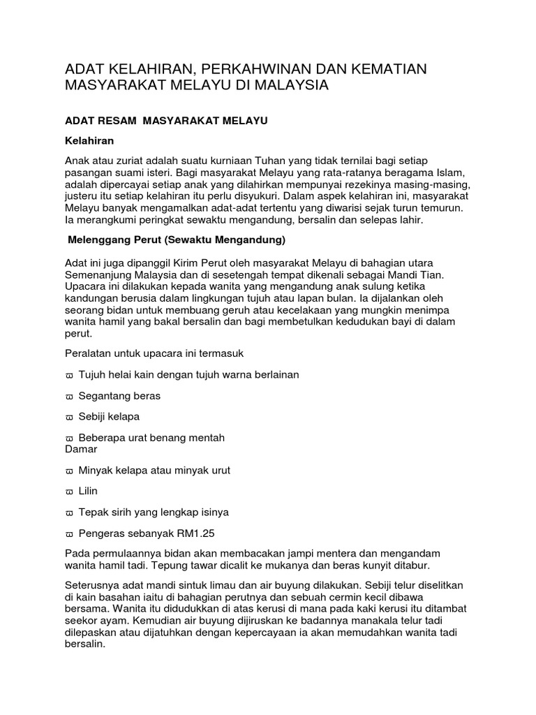 Warisan Melayu Adat Kelahiran Pengenalan Anak Atau فيسبوك