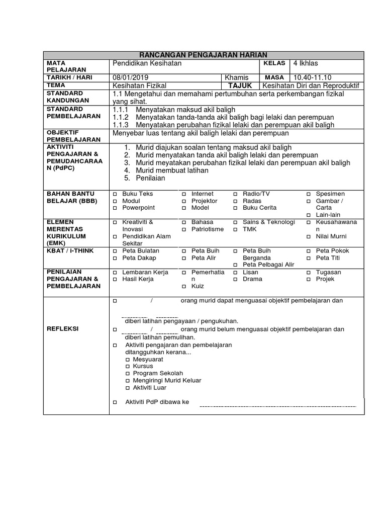 19th June Pk Akil Baligh Docx Rancangan Pengajran Harian Mata Pelajaran Tahun Pendidikan Kesihatan Tahun 4 Kelas 4 Hikmah Tarikh 19 Jun 2019 Masa Course Hero