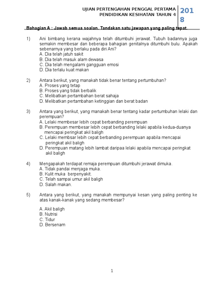Peperiksaan Pertengahan Tahun Pendidikan Kesihatan Pk Tahun 4