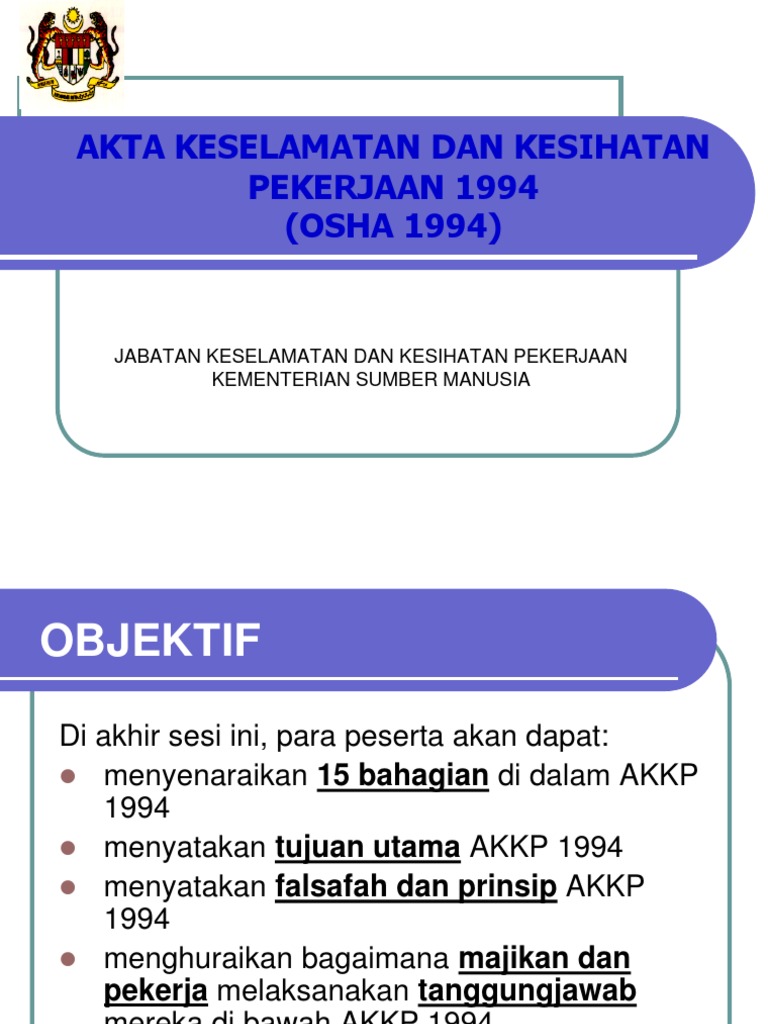 Akta Keselamatan Dan Kesihatan Pekerjaan 1994 Ppt Powerpoint