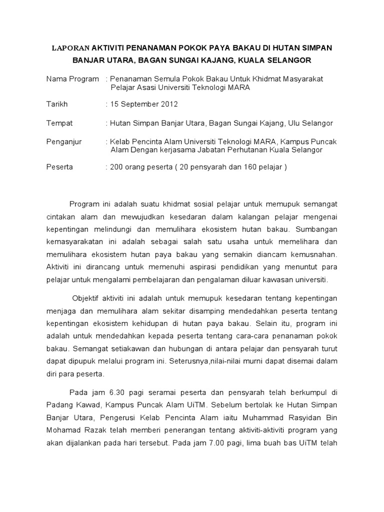 Kertas Cadangan Aktitivi Kelab Pencinta Alam Sekitar Pals Kertas Kerja
