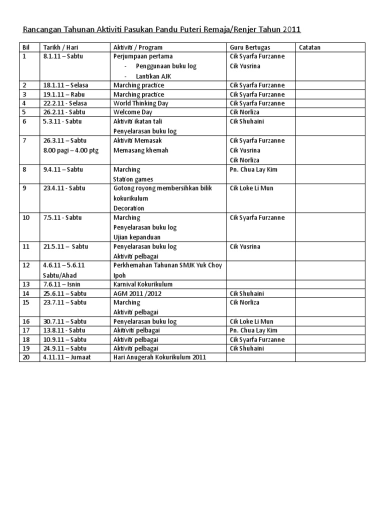 Rancangan Tahunan Pandu Puteri Tunas Doc Google Drive