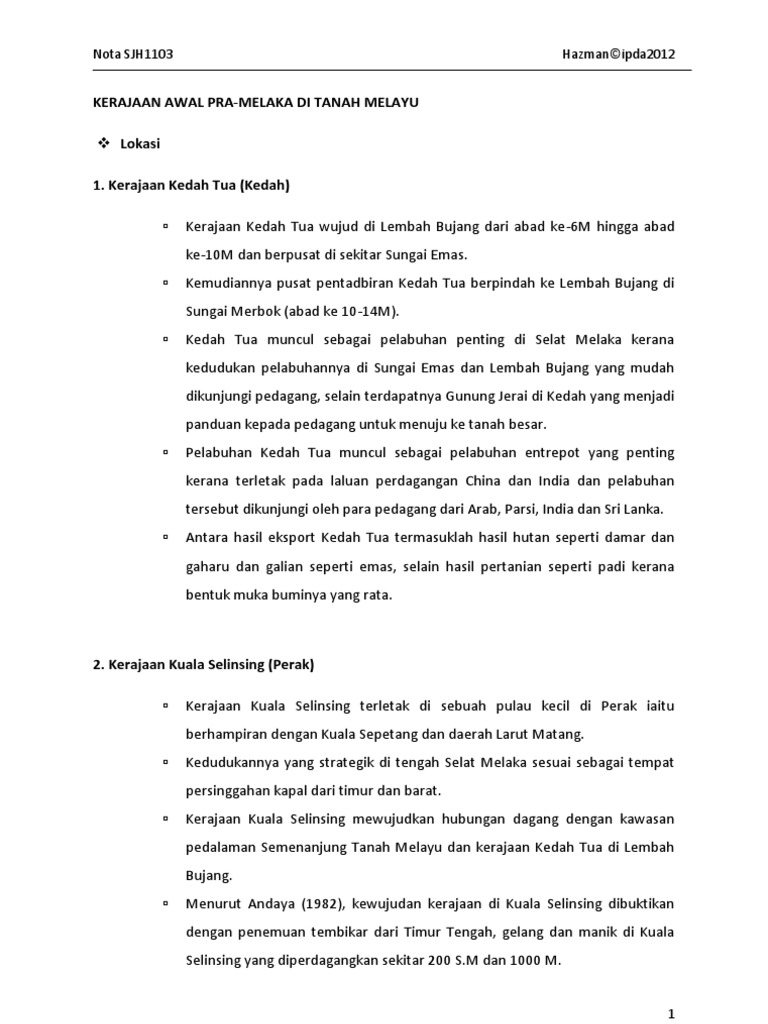 Nota Sjh1103 Kerajaan Awal Srivijaya Melaka