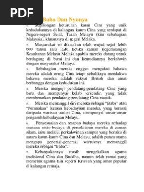 Adat Dan Budaya Etnik Di Malaysia Baba Dan Nyonya 205273