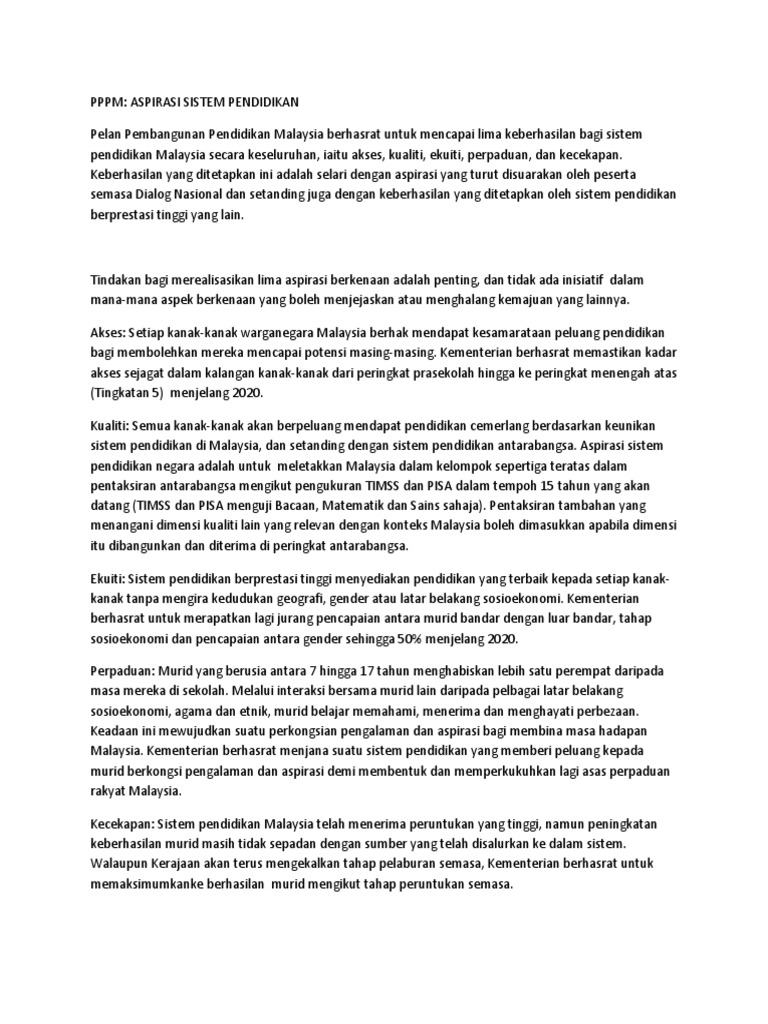 5 Aspirasi Pendidikan Dalam Pelan Pembangunan Pendidikan Malaysia Pppm 2013 2025