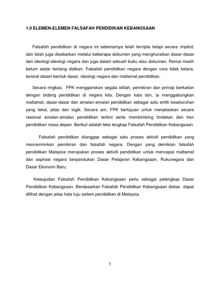 1 0 Elemen Elemen Falsafah Pendidikan Kebangsaan