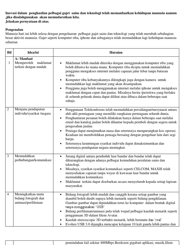 Inovasi Dalam Penghasilan Pelbagai Gajet Sains Dan Teknologi Telah Memanfaatkan Kehidupan Manusia Namun