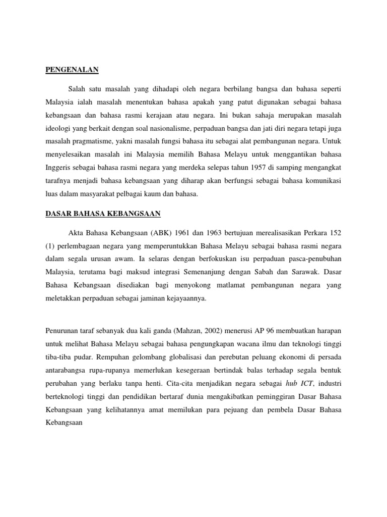 Doc Kedudukan Bahasa Melayu Dalam Negara Masa Kini Ahmad Kamal Academia Edu
