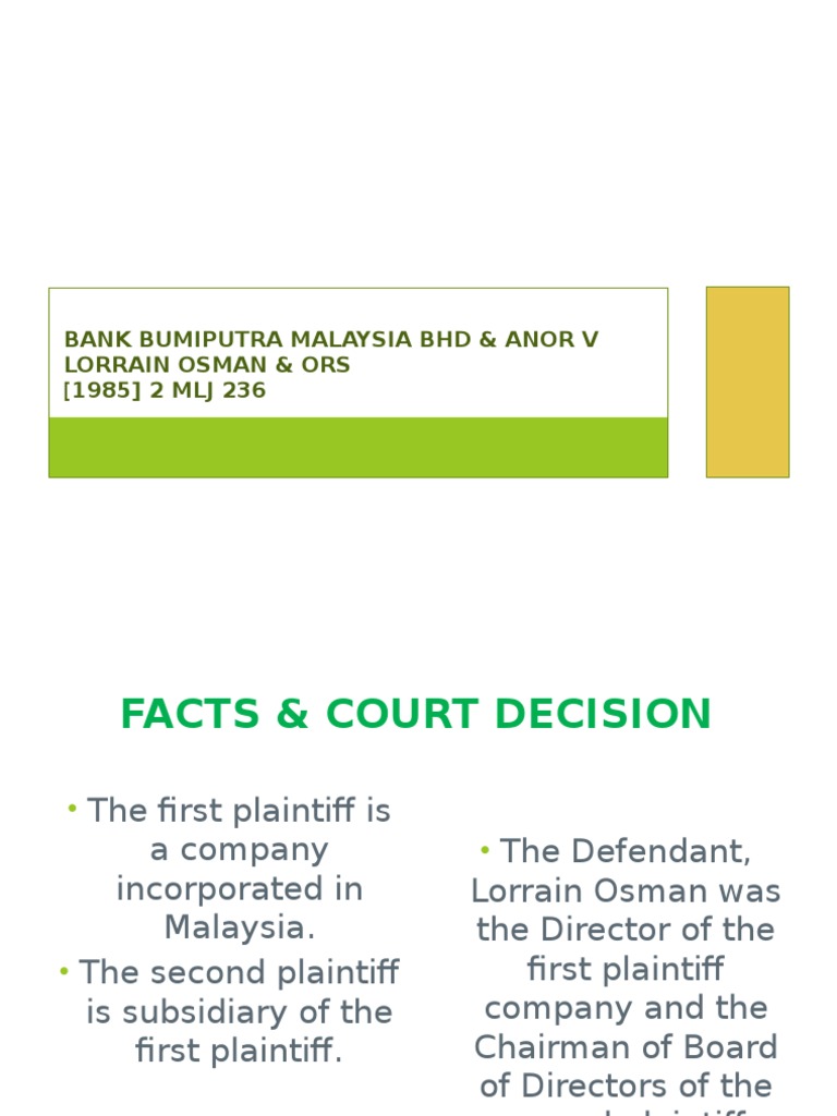 Bank Bumiputra Malaysia Bhd Anor V Lorrain Piercing The Corporate Veil Fiduciary