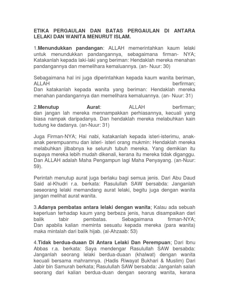Batas Batas Pergaulan Antara Lelaki Dengan Perempuan