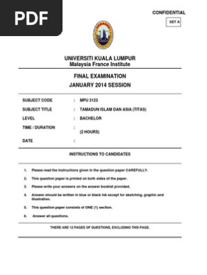 Tamadun Islam Dan Asia Titas Confidential Document No Unikl Mfi Sd Ac41 Revision No 02 Effective Date 01 December 2008 Set A Universiti Kuala Lumpur Course Hero