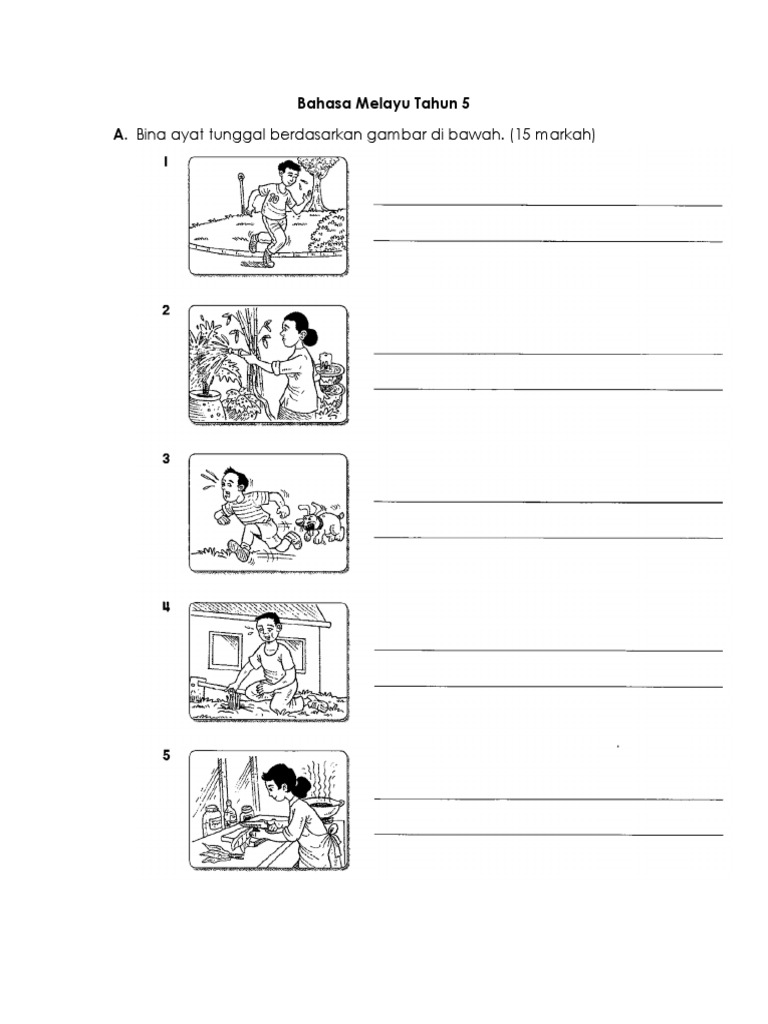 Bahasa Melayu Tahun 5 A Bina Ayat Tunggal Berdasarkan Gambar Di Bawah 15 Markah