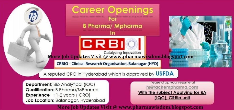 Career Openings For B Pharm M Pharm Candidates In Bio Analytical Department Ra Chem Pharma Ltd Pharma Wisdom