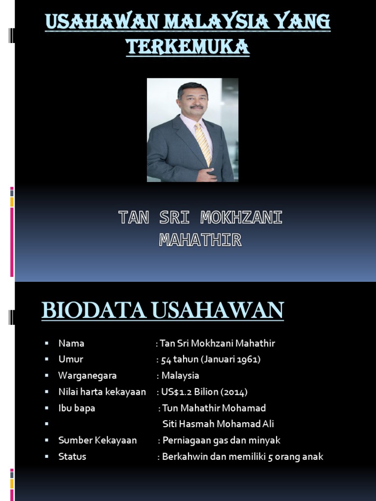 Biodata Of Tan Sri Mokhzani Mahathir Asas Keusahawanan