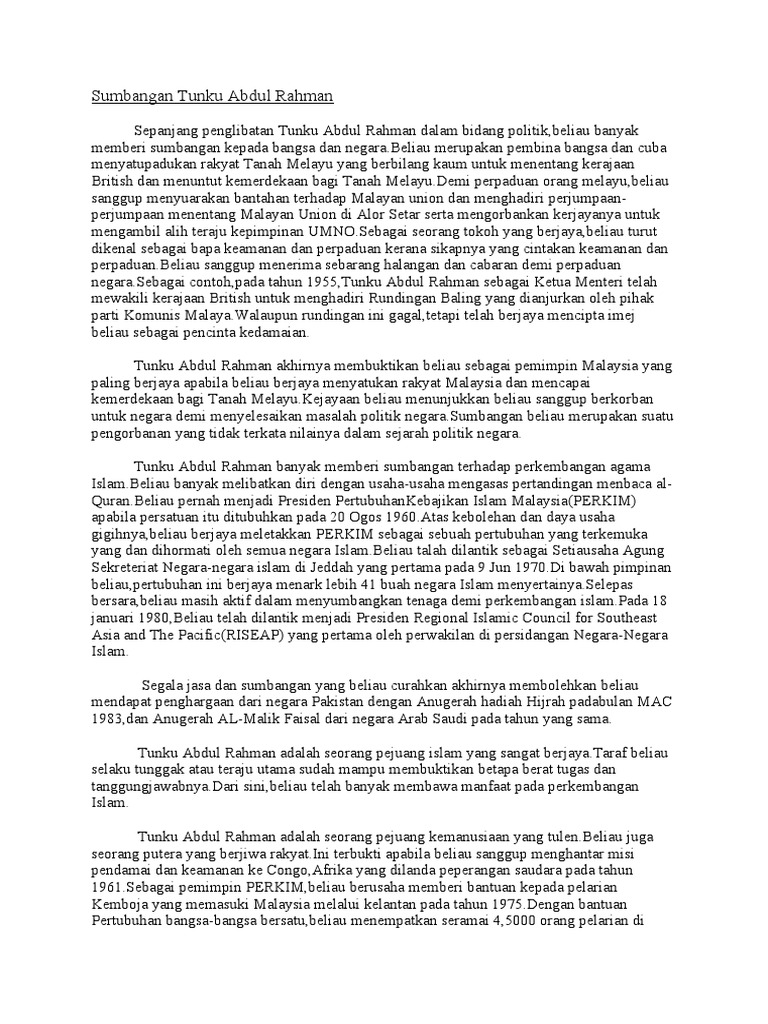 Latar Belakang Tunku Abdul Rahman Docx Course Hero