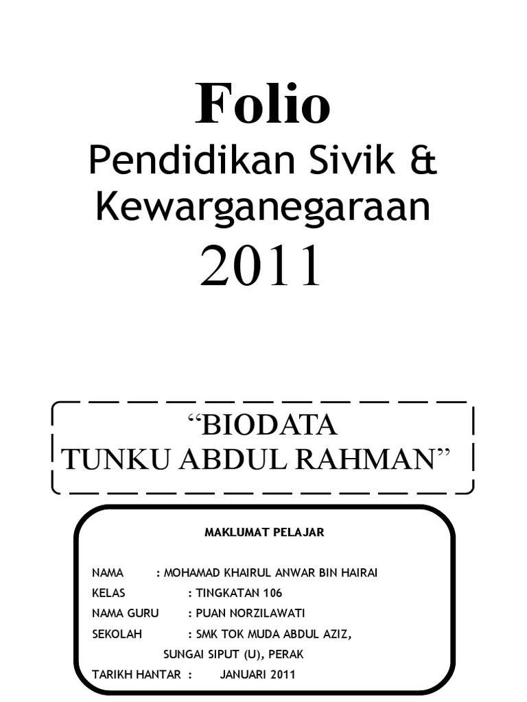 Contoh Biodata Tunku Abdul Rahman Contoh Pom