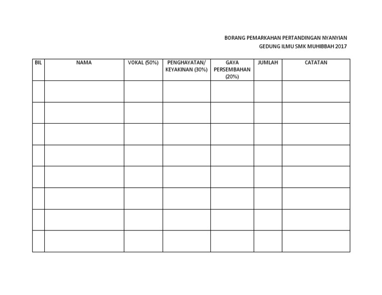 Borang Pemarkahan Pertandingan Nyanyian Docx