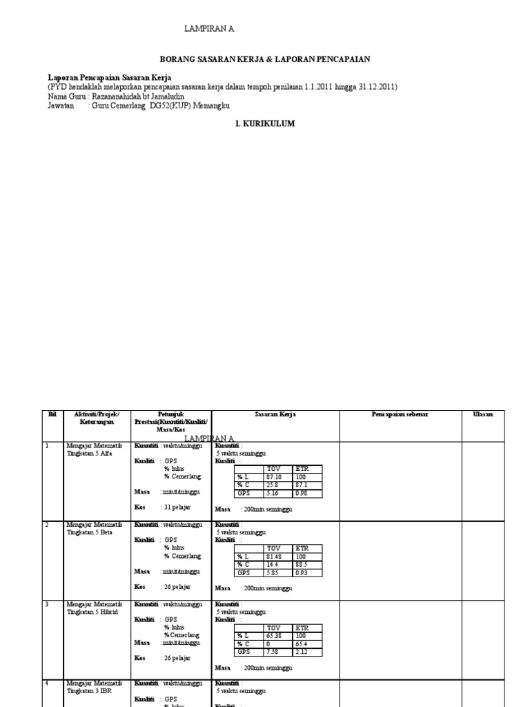 Doc Lampiran A Borang Sasaran Kerja Laporan Pencapaian Sang Kaya Academia Edu