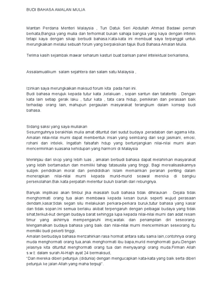 Pidato Berbudi Bahasa Budaya Kita Peringkat Zon Docx Pdf Document
