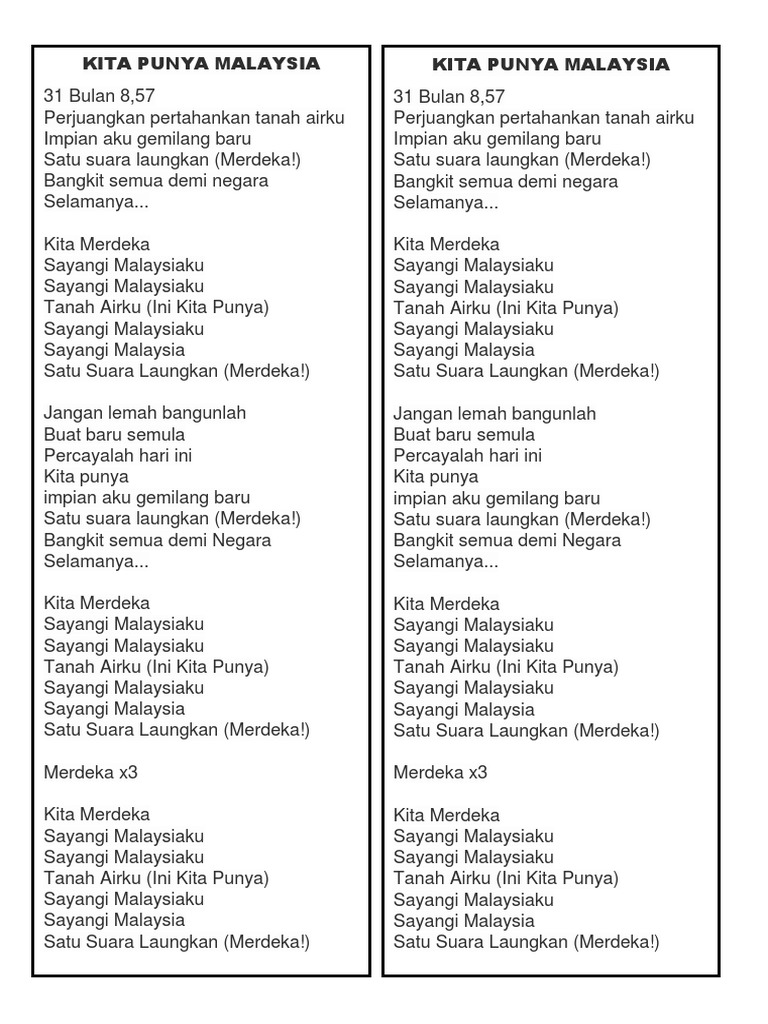 Lirik Lagu Kita Punya Malaysia Docx