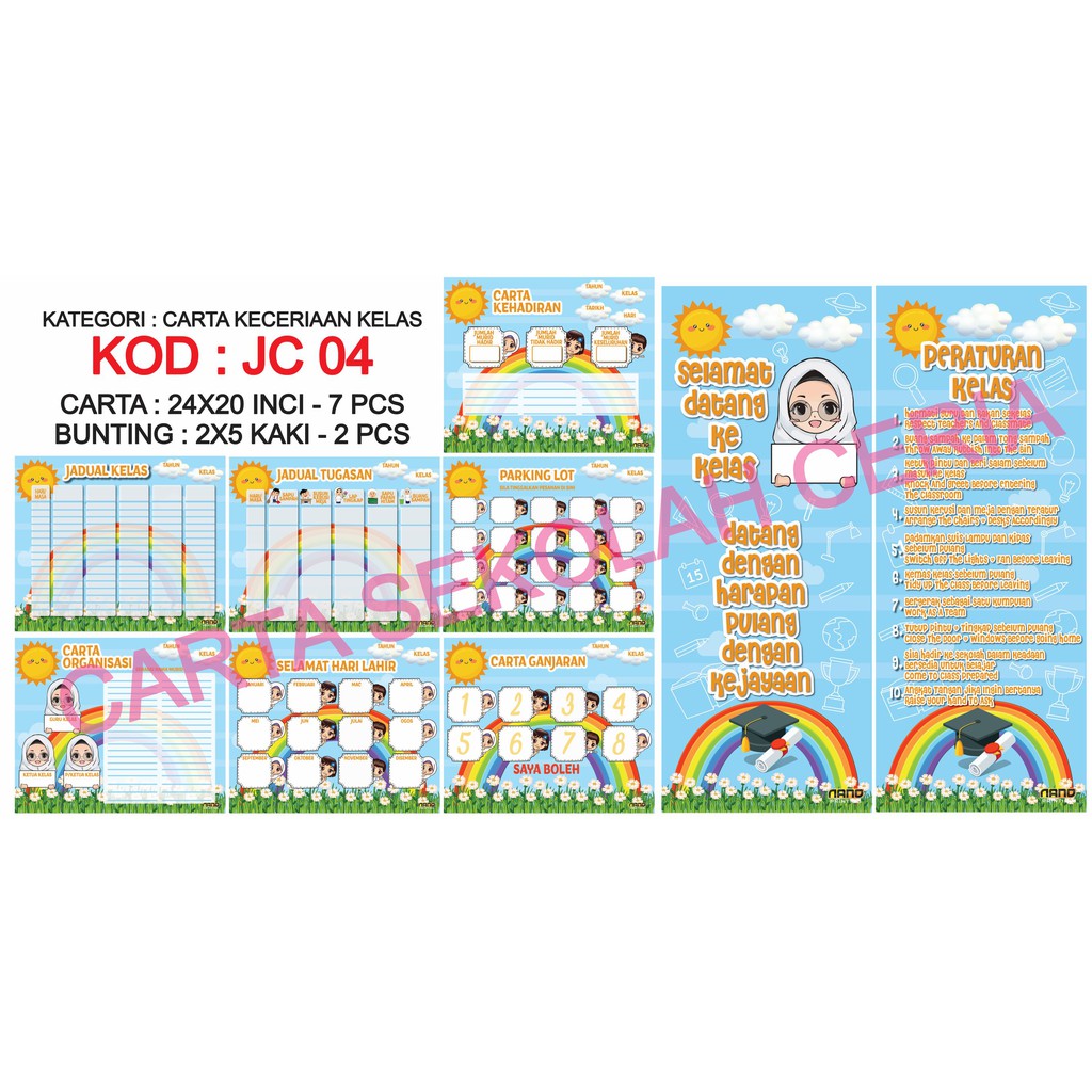 Jc20 Pak21 Carta Jadual Keceriaan Bilik Darjah Kelas Bahasa Melayu Percuma 2 Bunting Shopee Malaysia