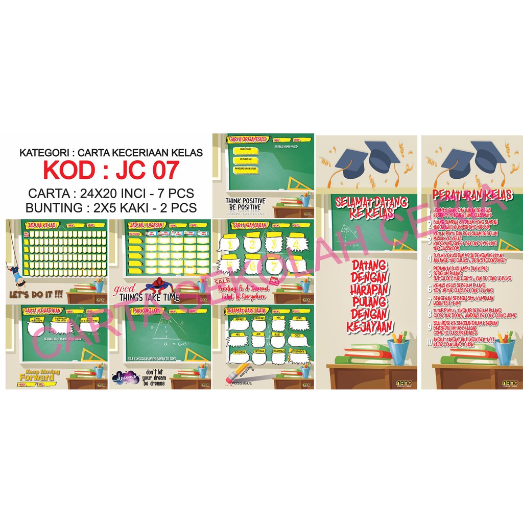 Jc07 Pak21 Carta Jadual Keceriaan Bilik Darjah Kelas Bahasa Melayu Percuma 2 Bunting Shopee Malaysia