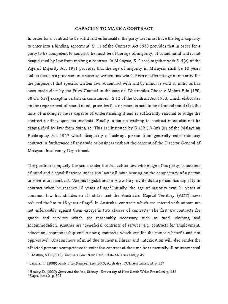 Sample Capacity To Make A Contract Malaysia Bankruptcy Common Law