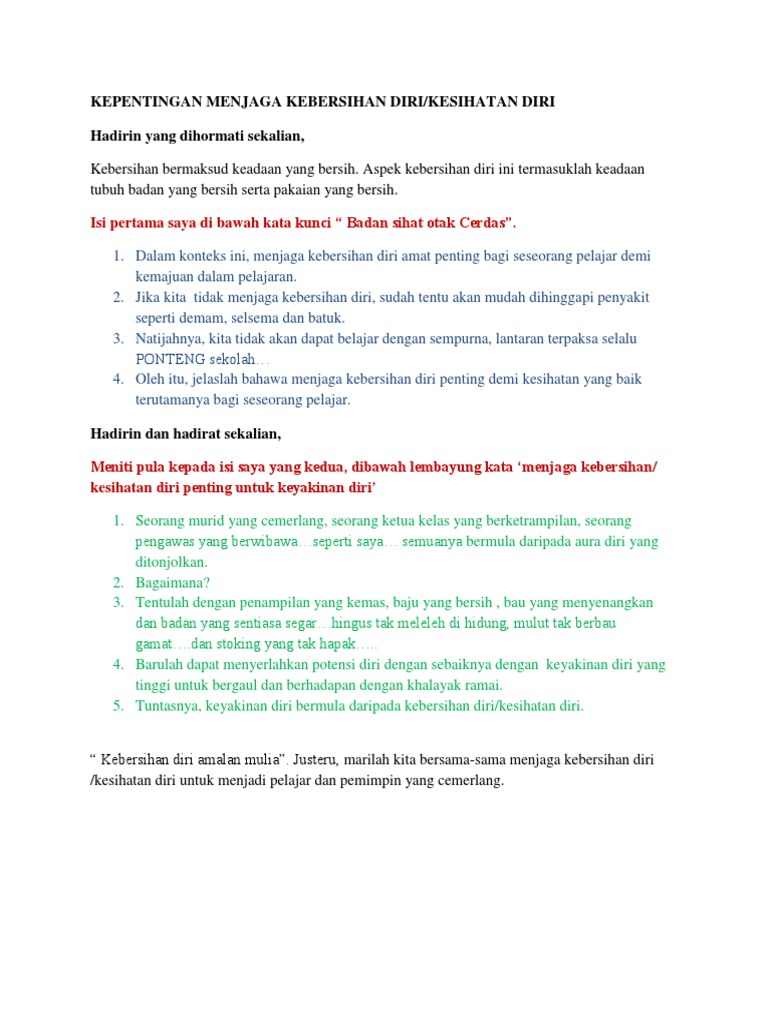 Karangan Jenis Ucapan Menjaga Kebersihan Diri