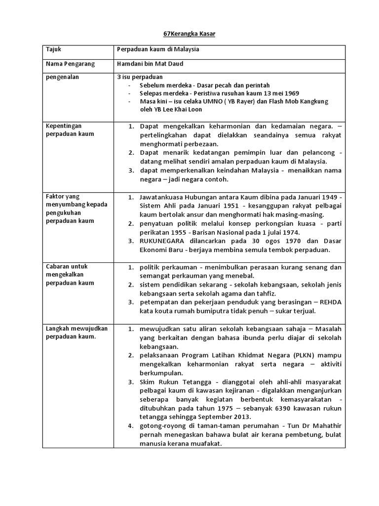 Contoh Kerangka Kasar Tugasan Sejarah Pt3 2018 Pendidikan Malaysia
