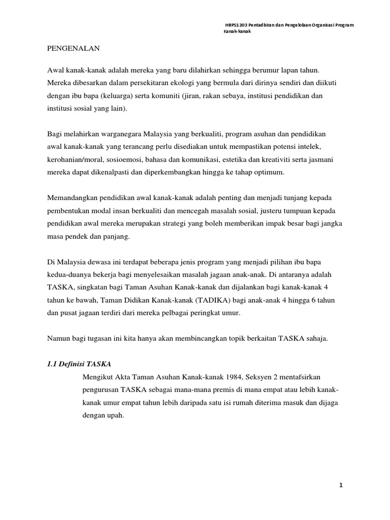 Doc Kertas Kerja Penubuhan Taska Edited Aida Dullah Academia Edu