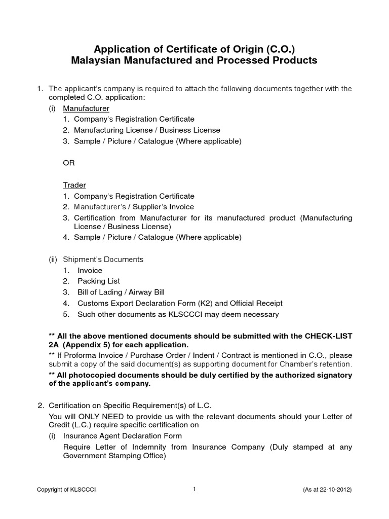 Preferential Certificate Of Origin