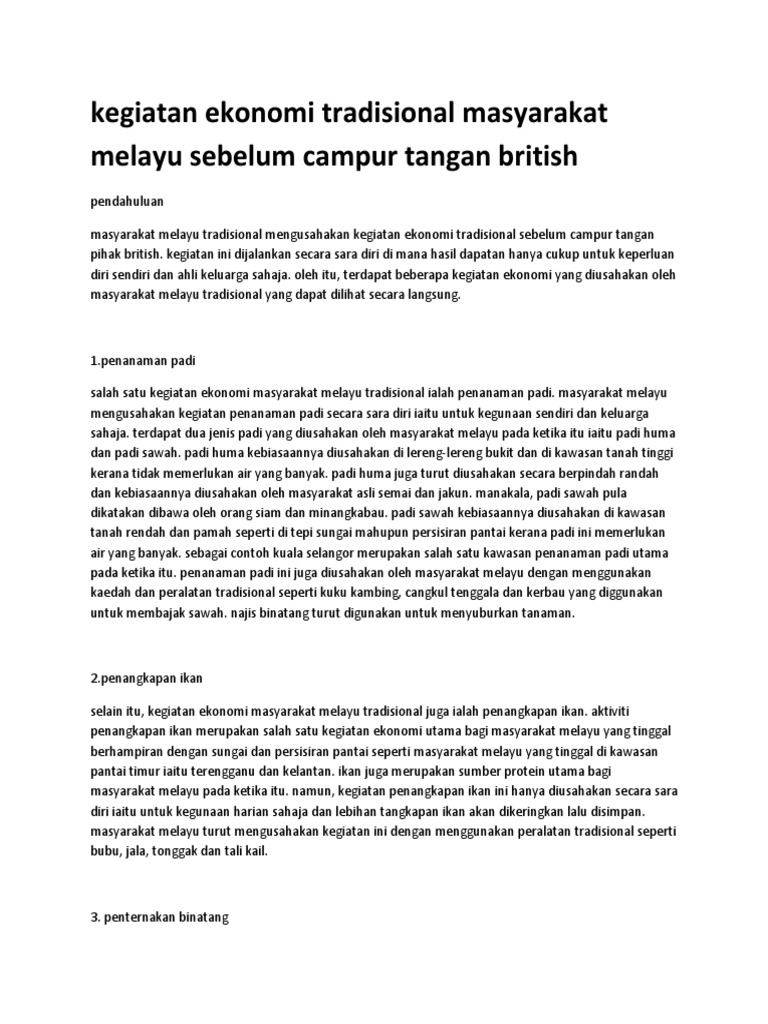 Kegiatan Ekonomi Tradisional Di Malaysia Pdf Free Download