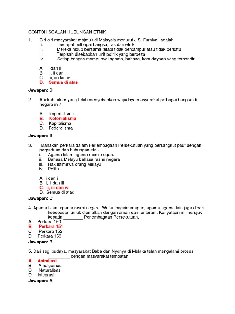 Soalan Hubungan Etnik Contoh