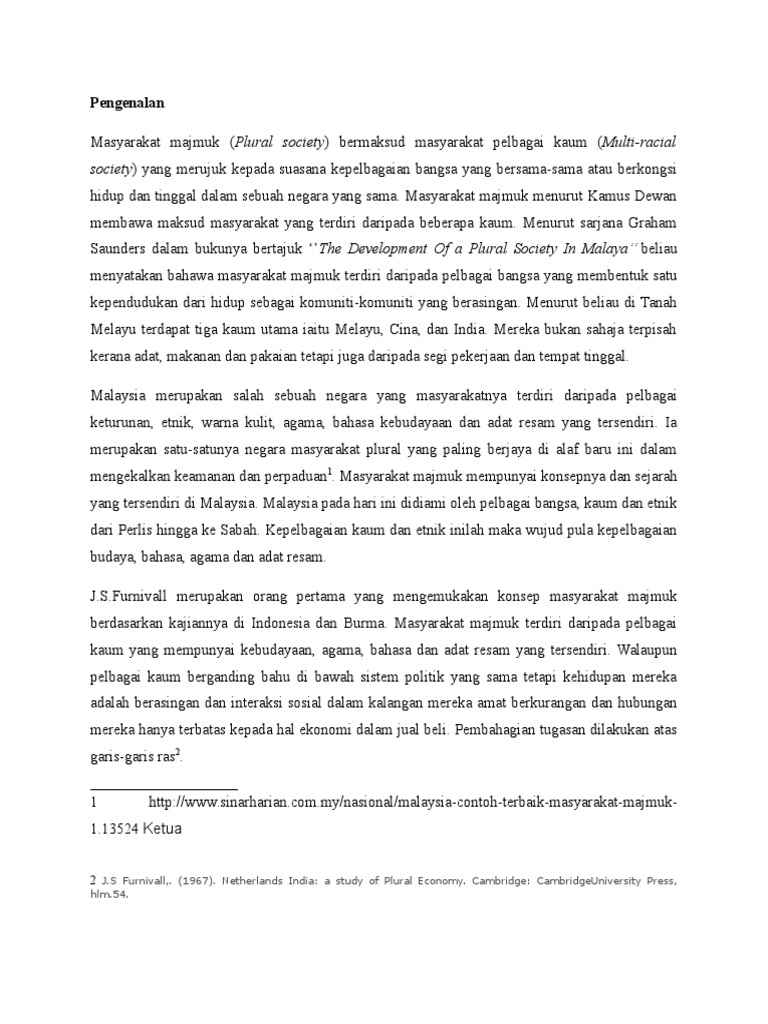 Ciri Ciri Masyarakat Majmuk Menurut Furnivall Minda Pengarang Hujah Sepintas Lalu Bersandarkan Ilmu Dan Isu