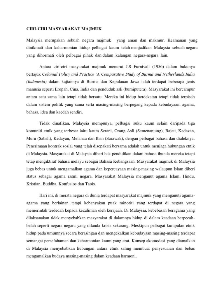Mix Docx Contoh Soalan Hubungan Etnik 1 Ciri Ciri Masyarakat Majmuk Di Malaysia Menurut J S Furnivall Adalah I Terdapat Pelbagai Bangsa Ras Dan Etnik Course Hero