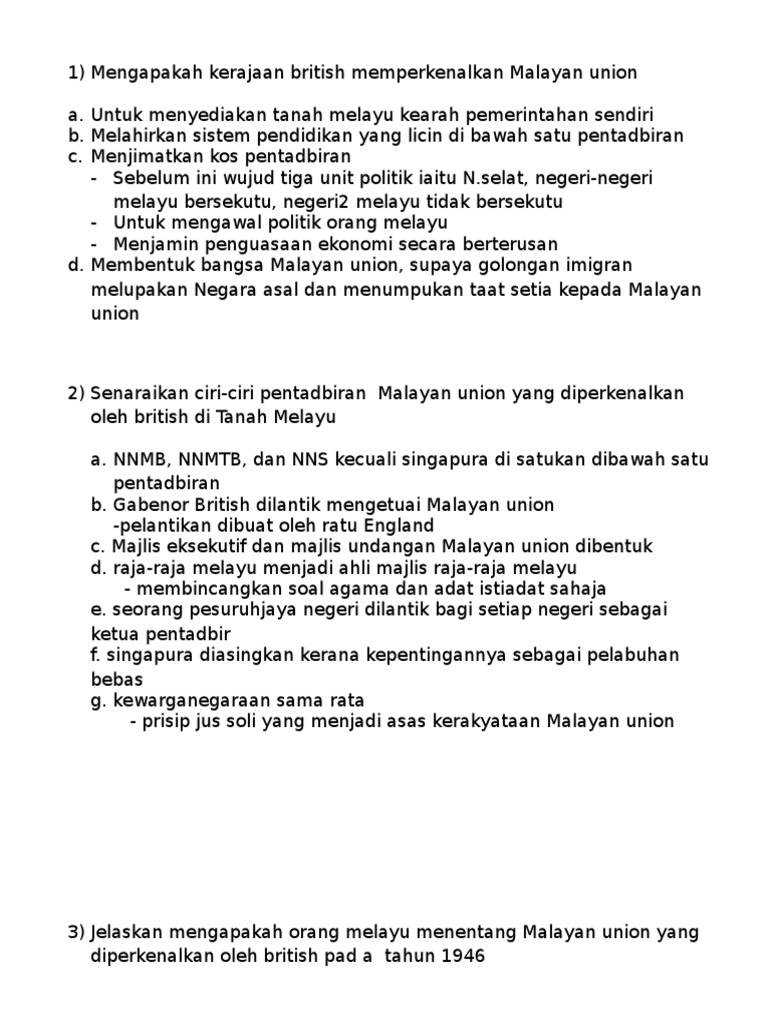Pengajian Malaysia Ciri Ciri Malayan Union