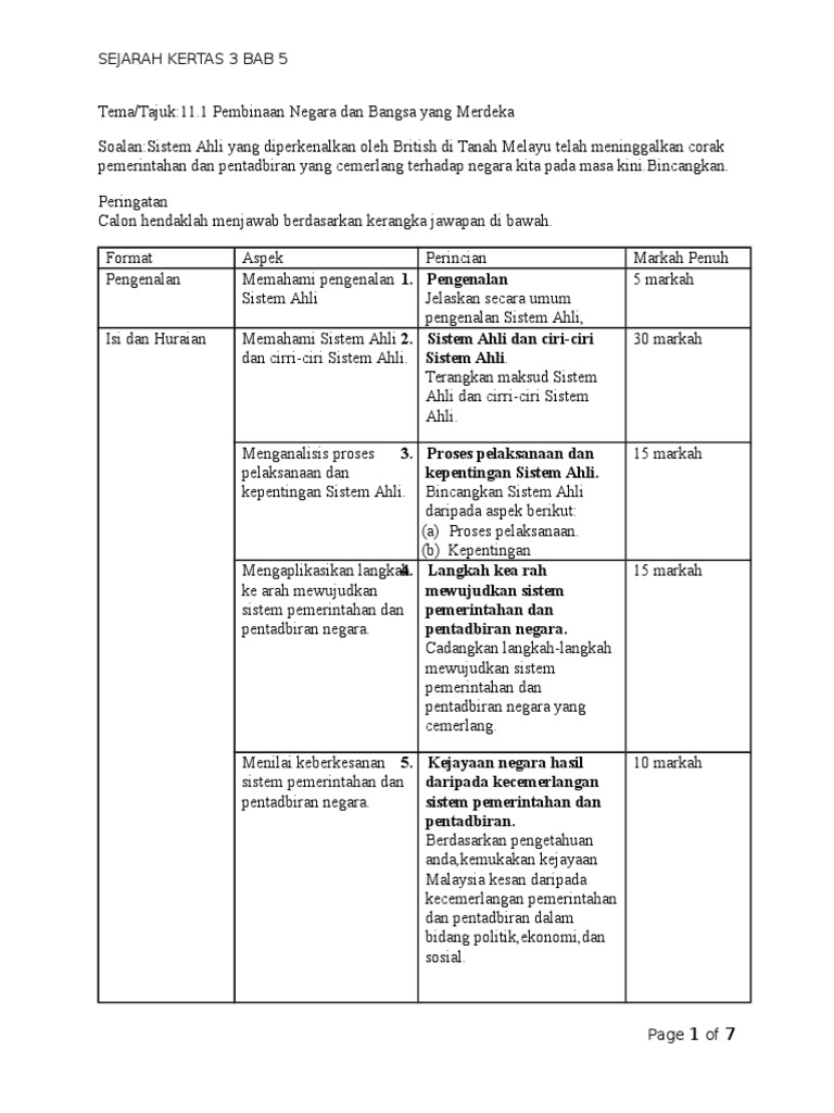Sejarah Kertas 3 Tema 11 1 Docx Document