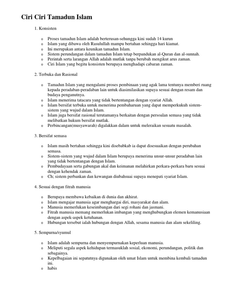 Ciri Ciri Tamadun Islam