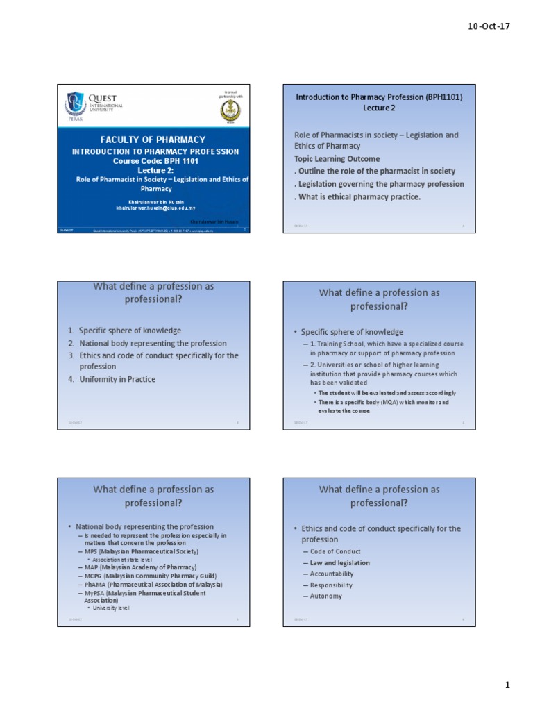 Lect 2 Role Of Pharmacist In Society Legislation And Ethics Of Pharmacy Profession Pharmacy