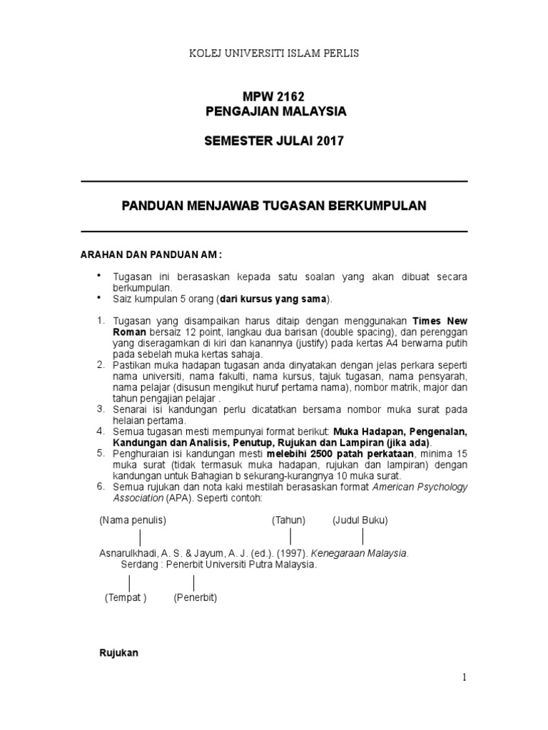 Terbaru 10 Contoh Assignment Pengajian Malaysia