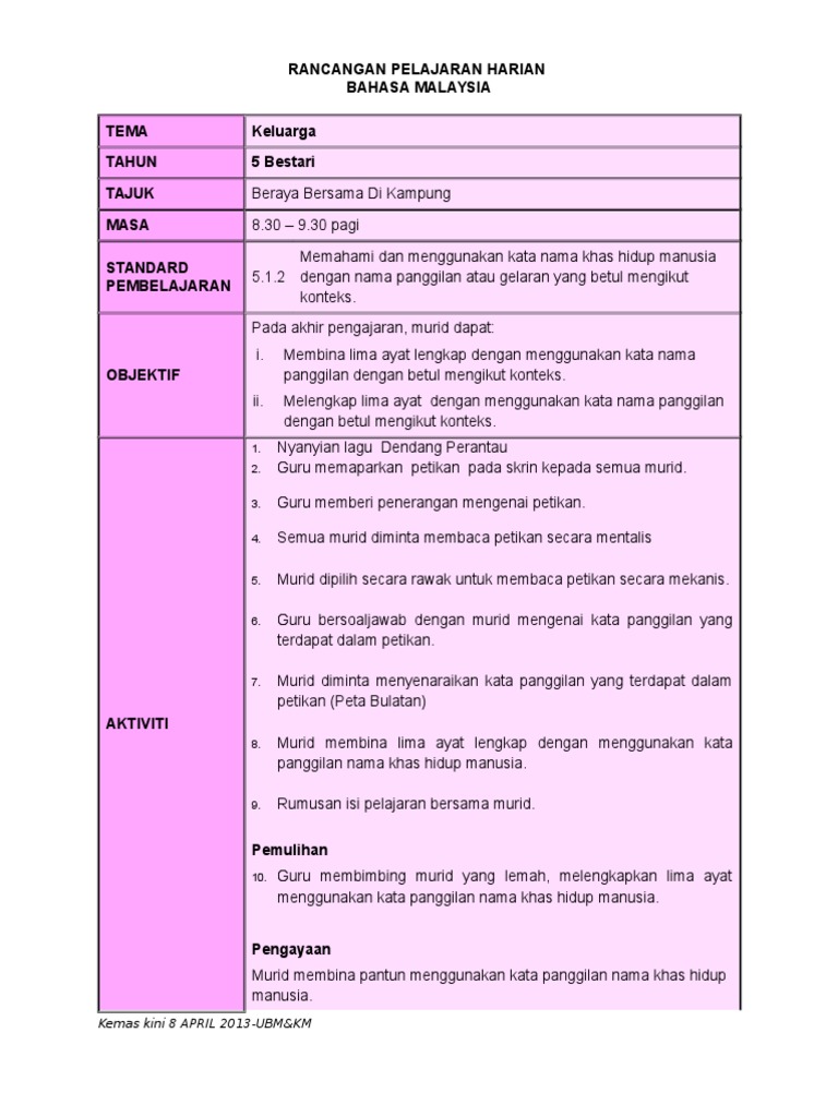 Contoh Rph K10 Thn 5 Tatabahasa