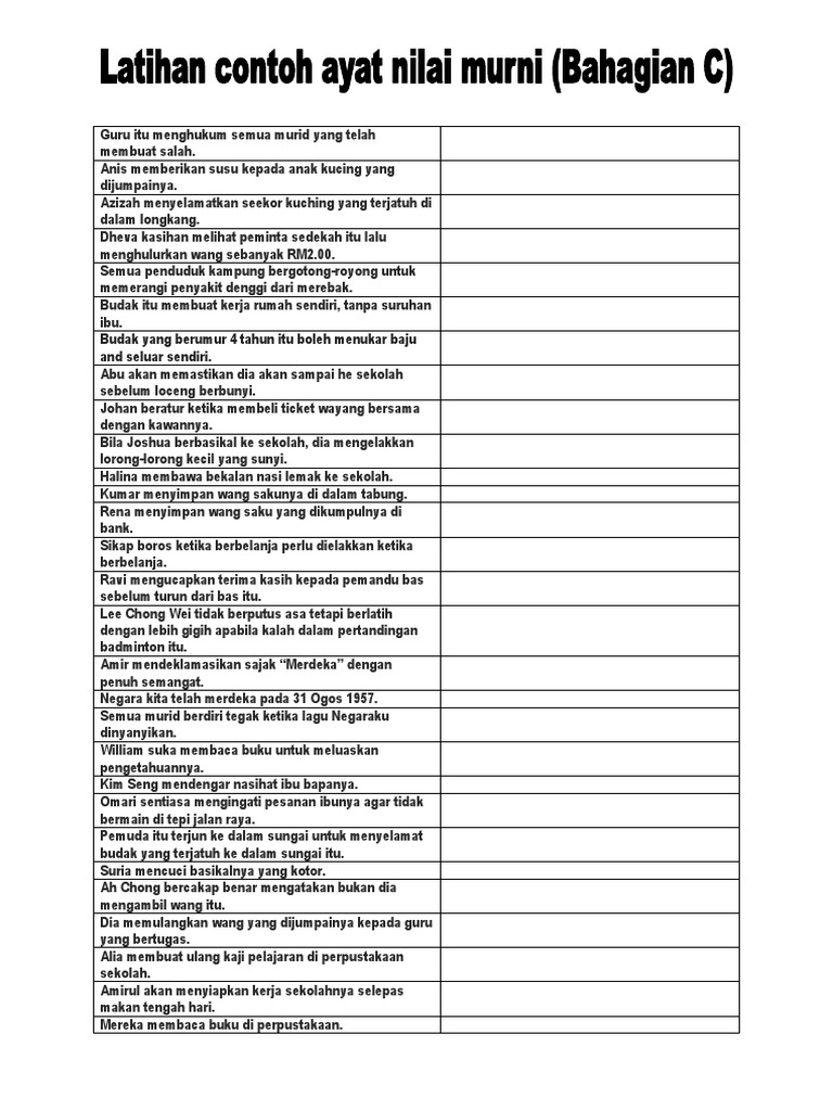 Contoh Ayat Nilai Murni Tahun 2