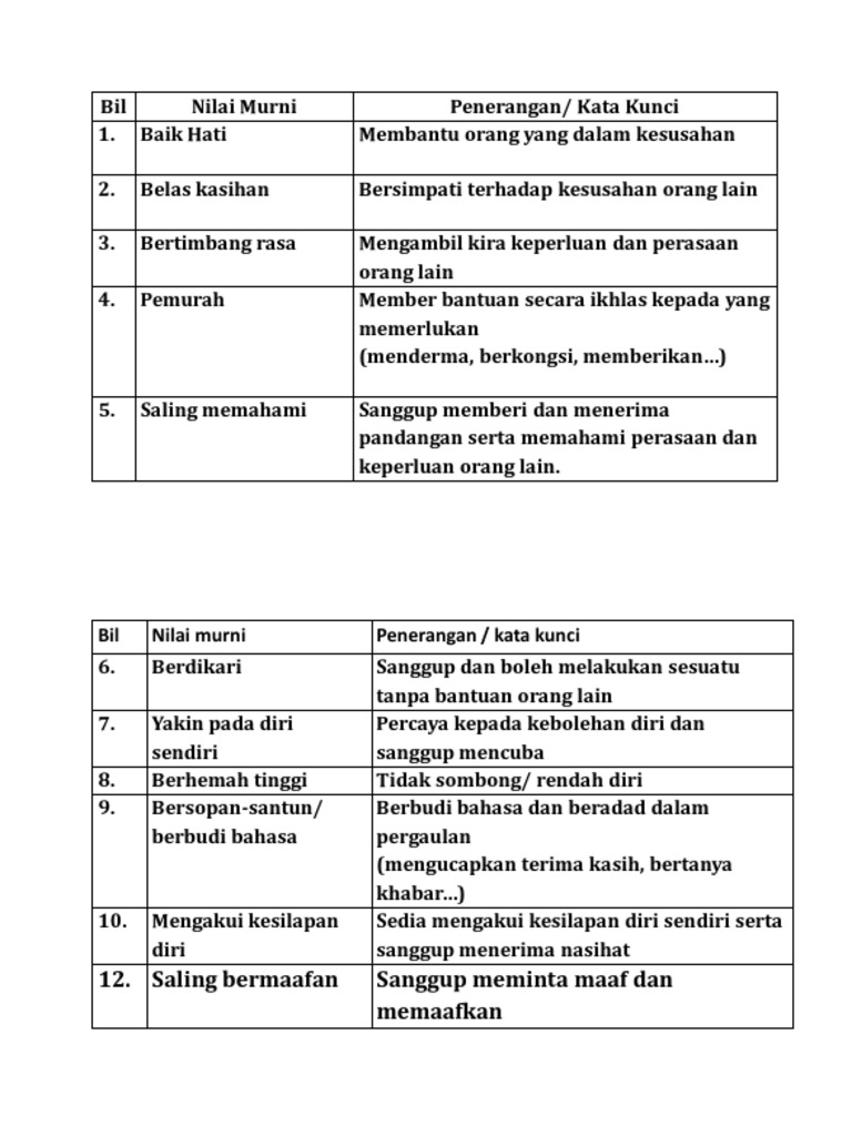 Senarai Nilai Murni Nilai Google Search