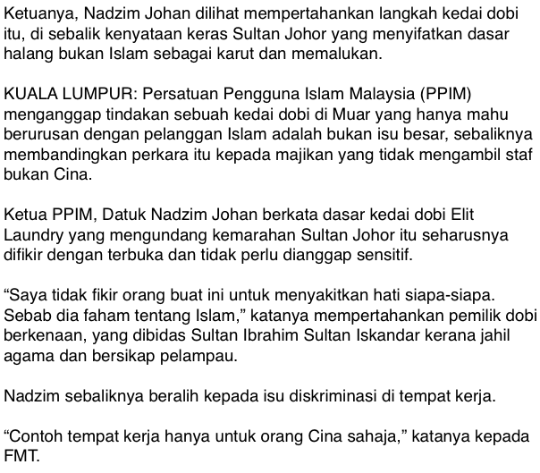 Ppim Beri Respon Balas Isu Dobi Mesra Muslim Yang Mendapat Perhatian Sultan Johor Metro Terkini