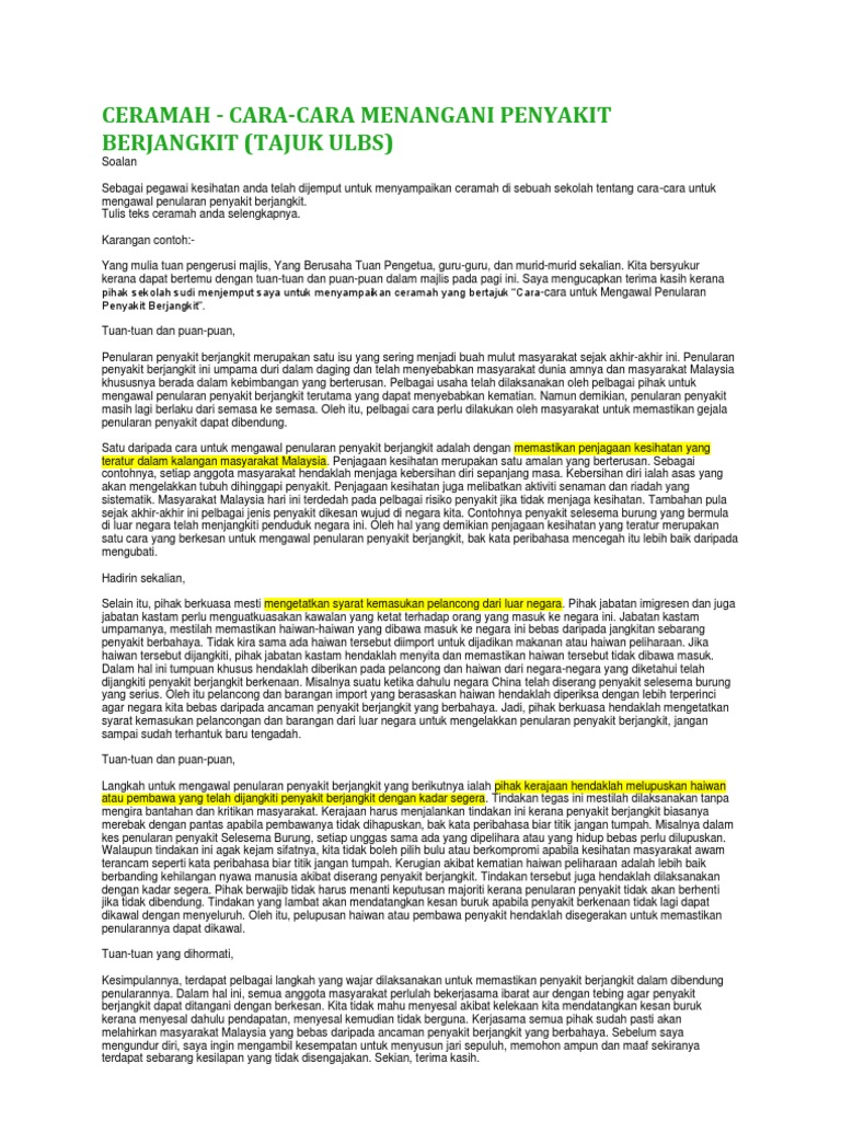 Langkah Mengatasi Penyakit Berjangkit Karangan Spm
