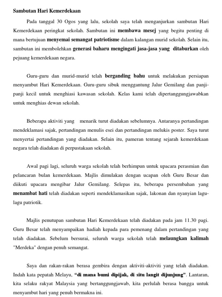 Karangan Sambutan Hari Kemerdekaan Di Sekolah Pt3