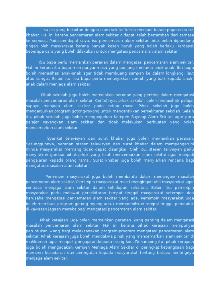 Contoh Karangan Pencemaran Alam Sekitar Surat 35