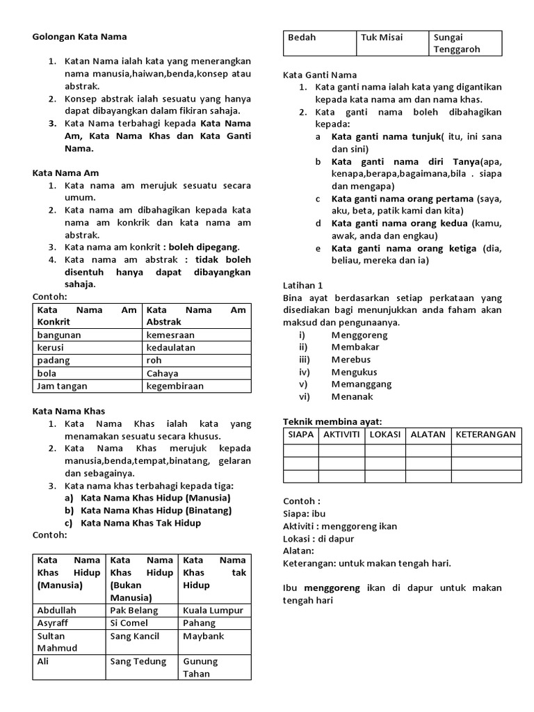Contoh Kata Nama Am Materi Pelajaran 1